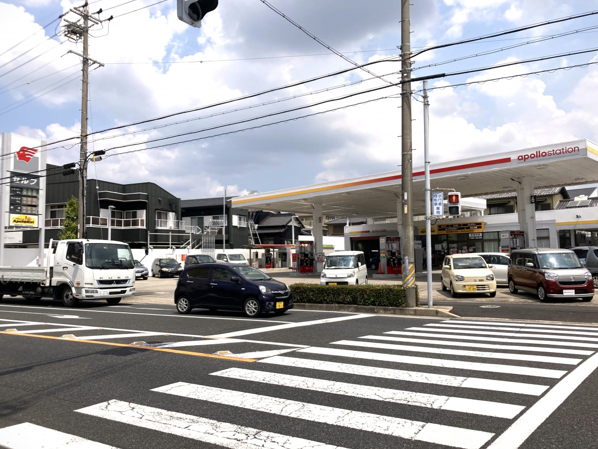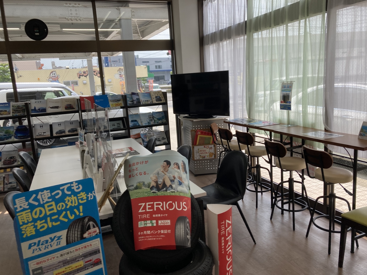 お店は「築地町5丁目交差点角」にあります・待合室・無料代車完備