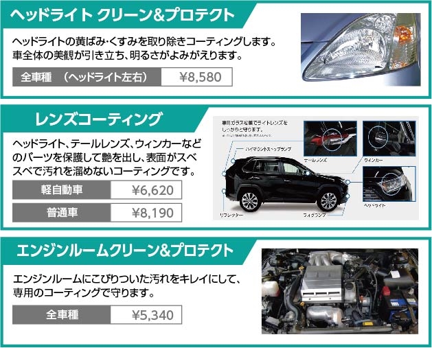 声掛けください。お客様の愛車に合うメニューをじっくりとご説明させていただきます。