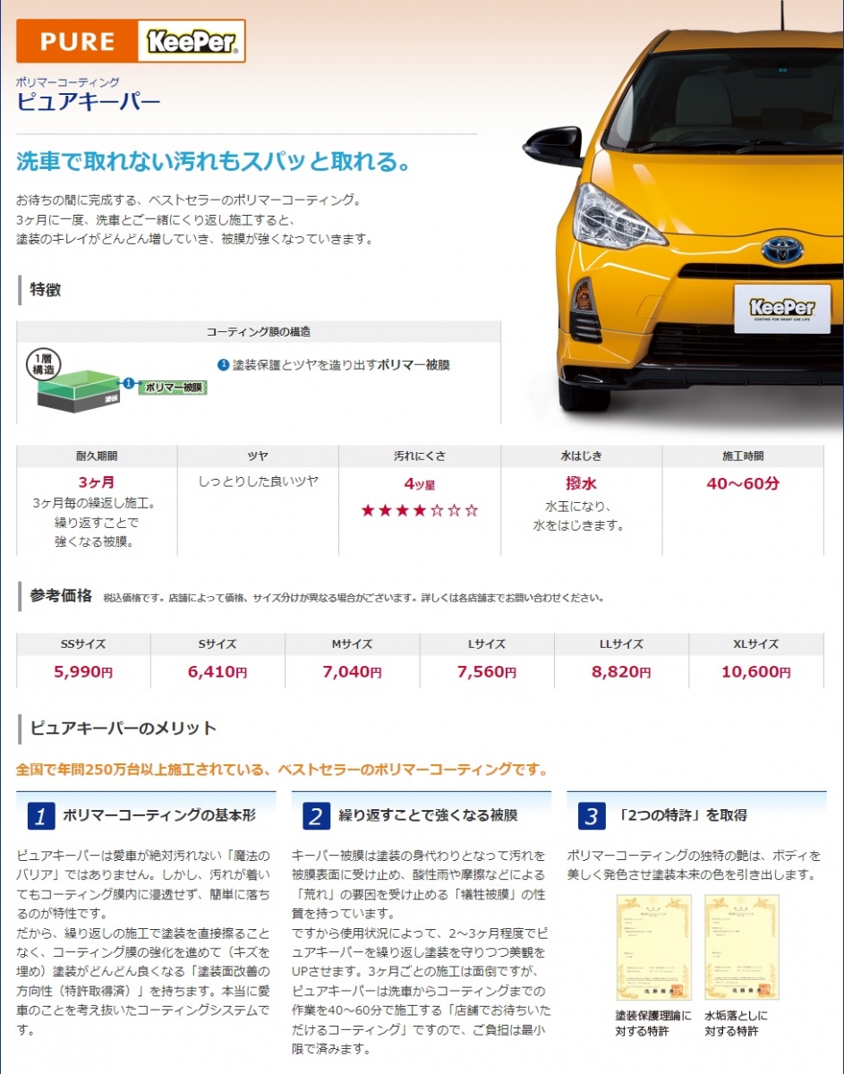 EX キーパーは新車用コーティングのため、納車1 ヶ月以降もしくは1,000km 以上走行の車
