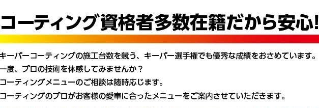 です。メニューの内容をじっくりとお聞きになりたい場合は、お気軽に店舗スタッフまでお声掛けください。お客様の愛車に合うメニューをじっくりとご説明させていただきます。