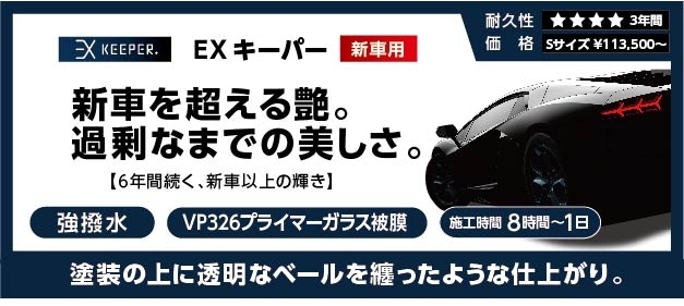 EX キーパーは新車用コーティングのため、納車1 ヶ月以降もしくは1,000km 以上走行の車は必要に応じ「軽研磨」「鏡面研磨」を行います。