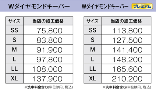 当店がお取り扱いしているキーパーコーティングメニューは、