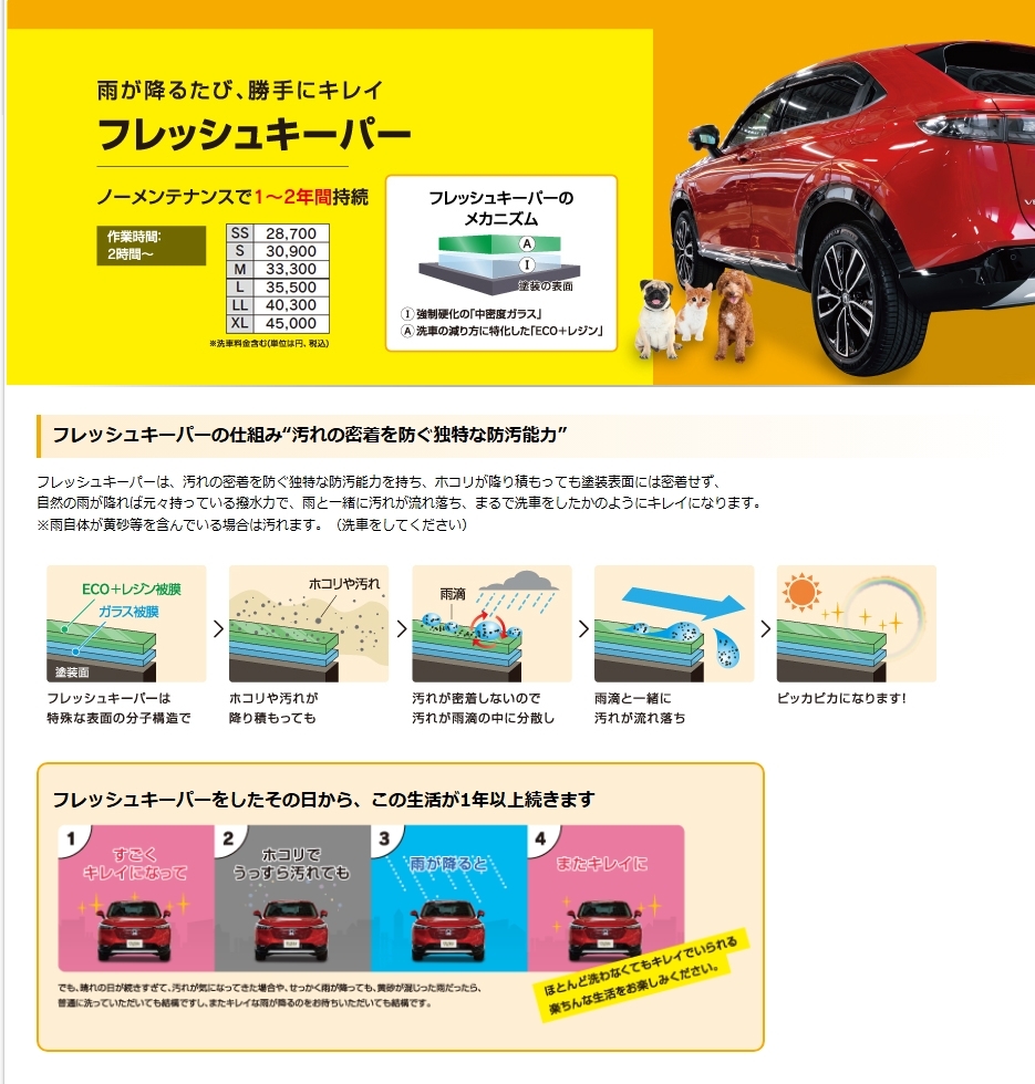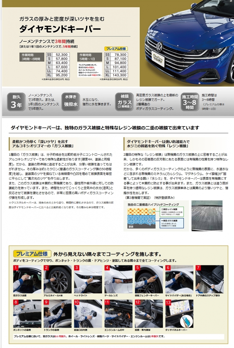 新車納車時、中古、経年車リフレッシュ時、車検時も、カーコーティングはディーラーだけでなく、お客様にぴったり合った商品を選べる時代です。