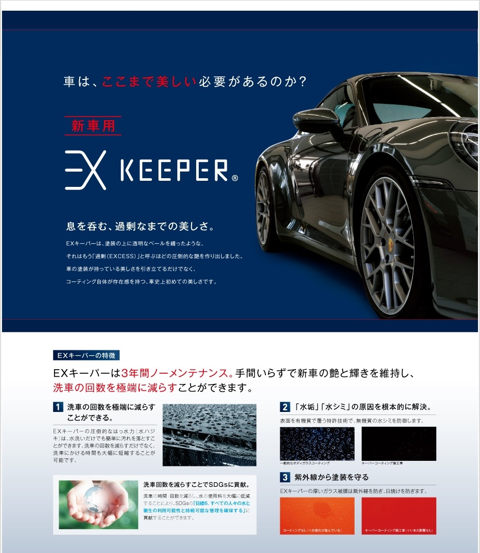 キーパーコーティングを通じて、お客様の愛車の「キレイ」を実現し、「また来たい」と思って頂けるサービスをお約束します。