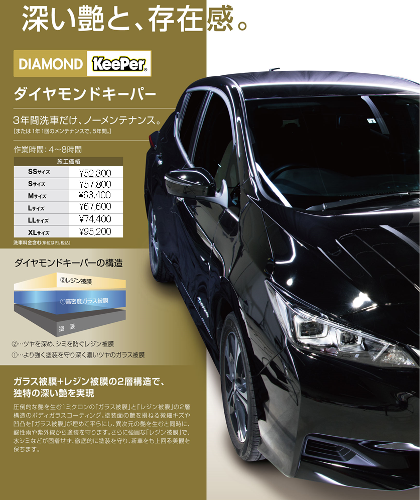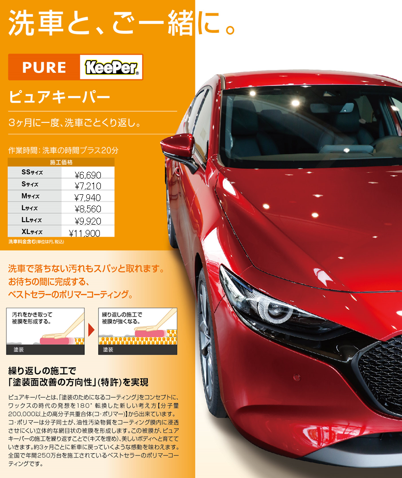 少しお時間のかかるキーパーコーティング施工時には、無料の代車をご用意しております。