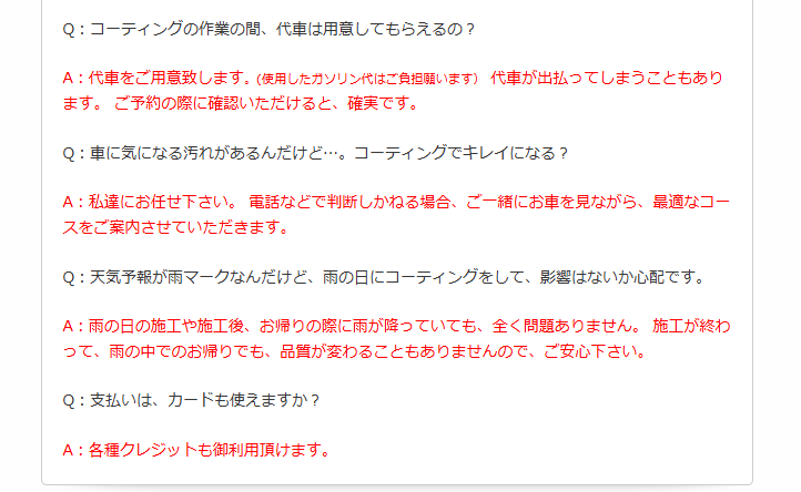 - 洗車・コーティング営業時間