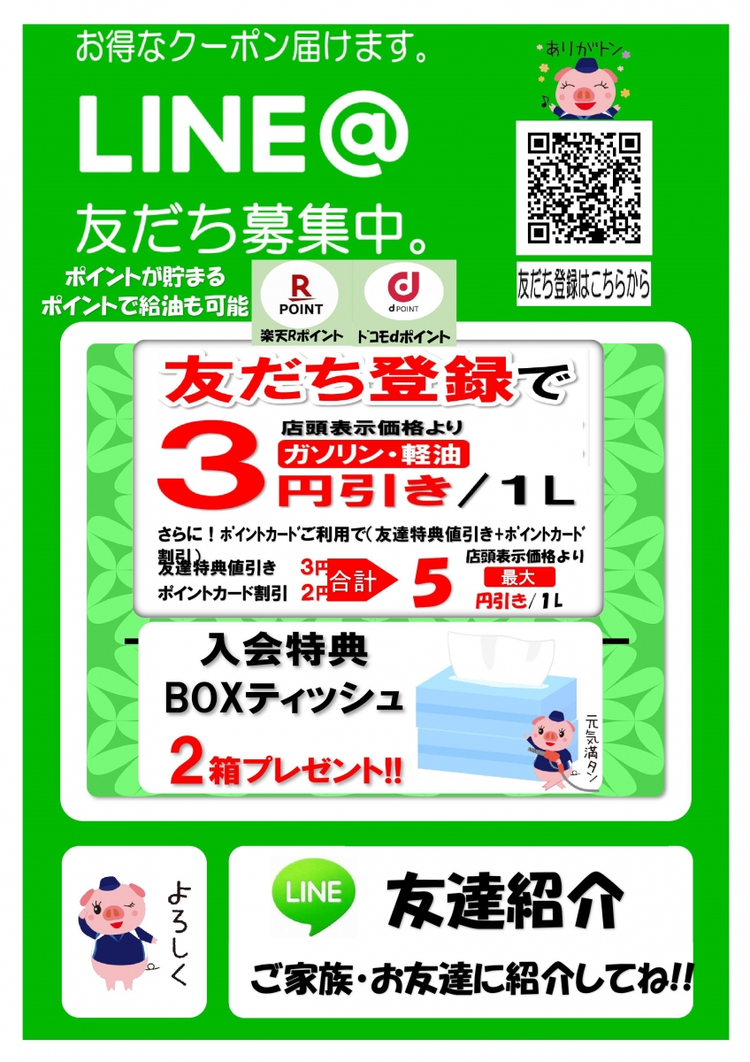 特典2 ガソリン・軽油・灯油のクーポンコードで毎回お得に給油!!