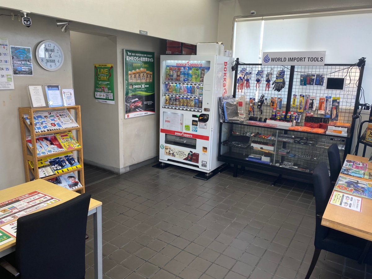 ウェイティングルーム、周辺環境も充実! 自動車整備の専門的な工具も売ってます!!