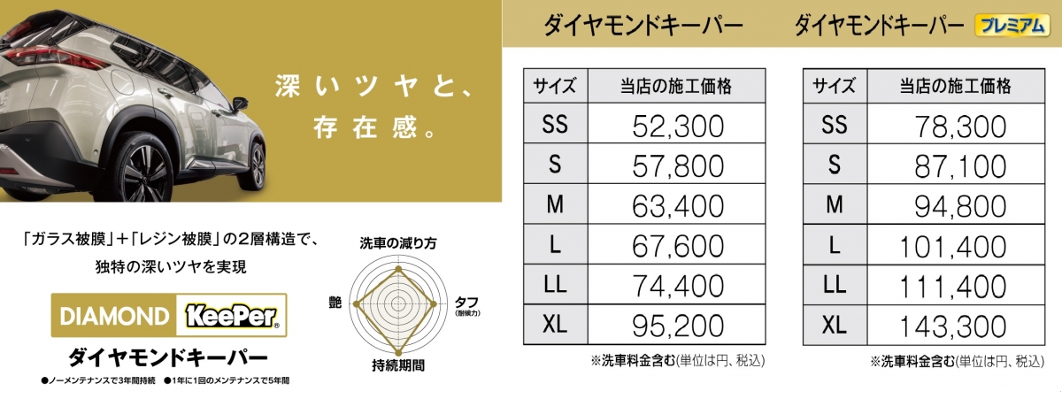 新車をはるかにしのぐほどの深いツヤと濃厚な発色を実現する強固な被膜は1年ごとのメンテナンスで5年間愛車を守ります。