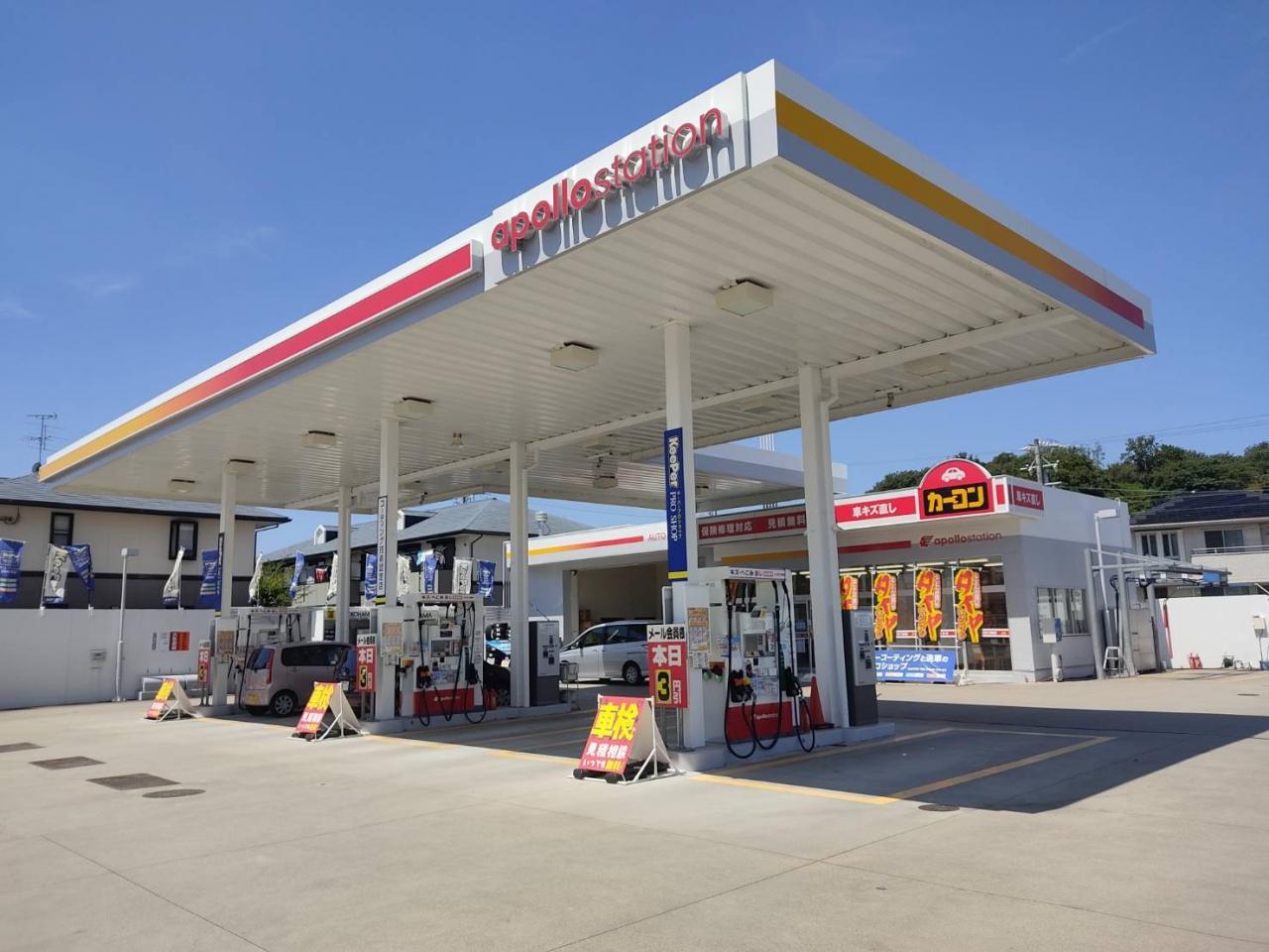 当店はガソリンスタンド併設のカーコンビニ俱楽部です!