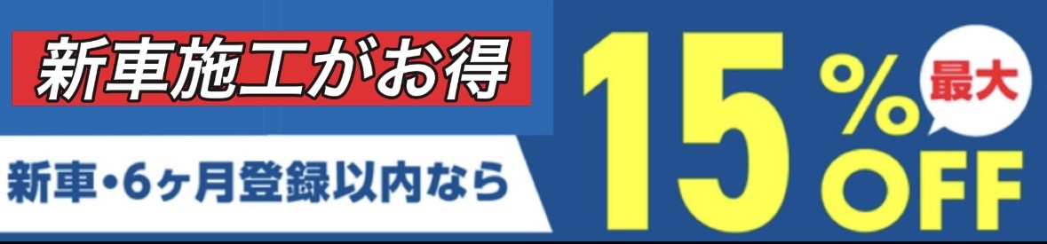 新車登録6ヶ月以内の車は15%OFF