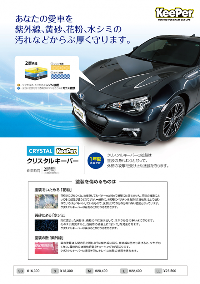 創業50年。洗車・コーティング・車検・オイル・タイヤ整備・自動車保険などなど、KeePerコーティング技術資格はもちろん自動車整備士資格や損害保険募集資格を持ったスタッフが真心こめて対応いたします。
