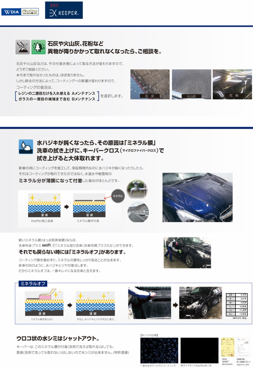 Keeperコーティング施行車であれば(他社の撥水系のガラスコーティングも可)"ミネラルオフ"できれいさっぱりミネラルを除去して艶と撥水を復活させることが出来ます!
