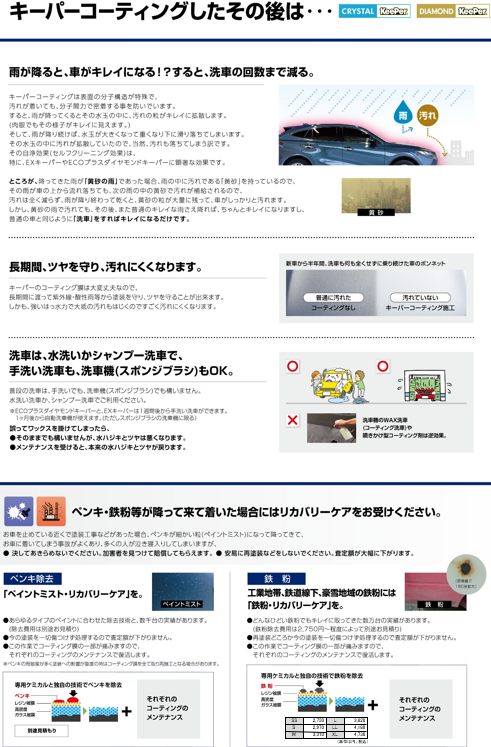 EX KEEPERはKeeper初の新車用コーティングになります(ただし経年車の場合塗装状態に応じた研磨等の下処理によって施工可能)