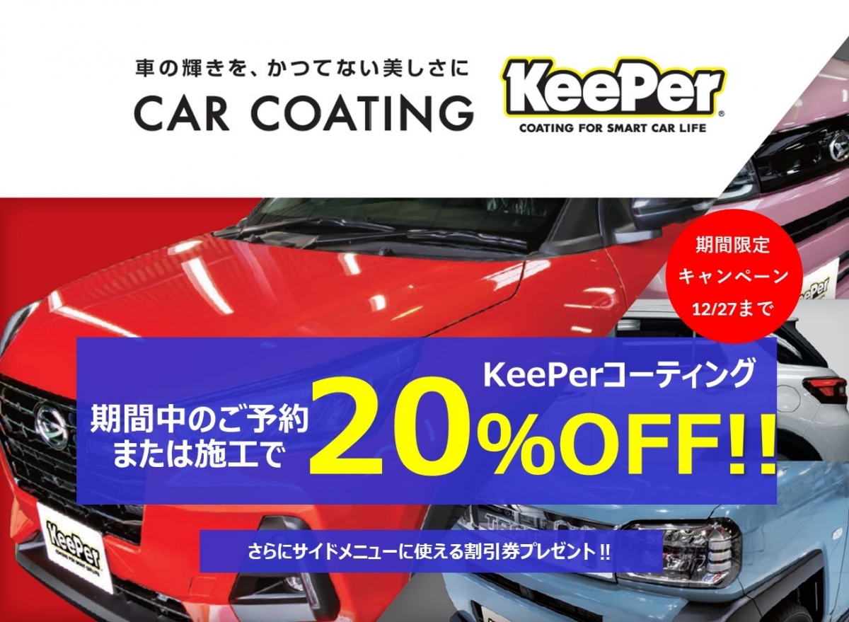 キーパー知多八幡店でキーパーコーティングの施工が20%OFF!