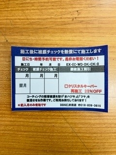 当店で施工して頂いたお客様に被膜チャックを無償で行っております。