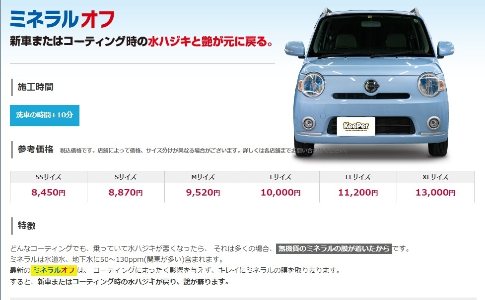 Cコース (作業時間50分~) 手洗い洗車プラス水はじきと艶を元に戻す、ミネラルオフ