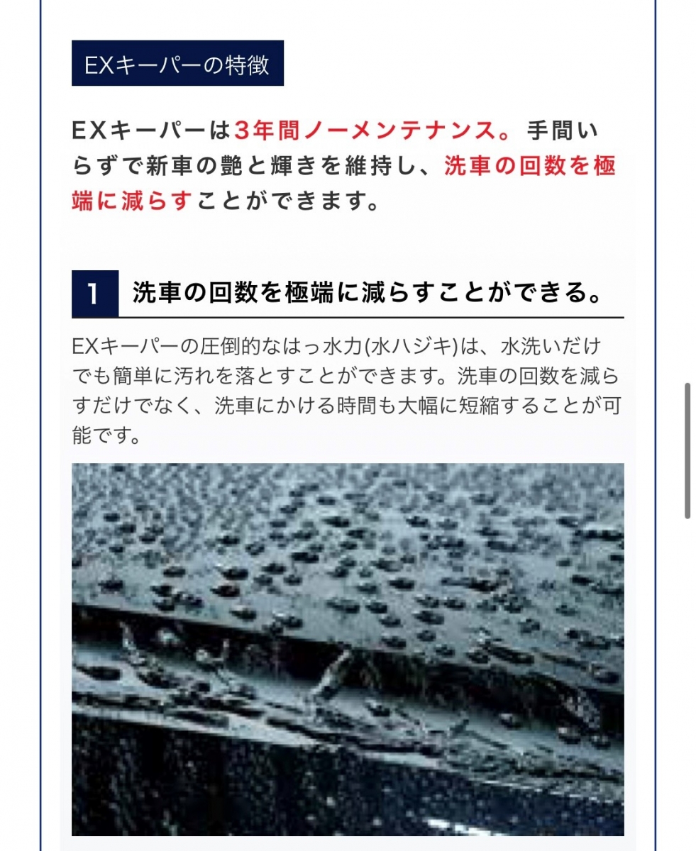 ダイヤモンドキーパーの艶と撥水+EXキーパーの自浄性能