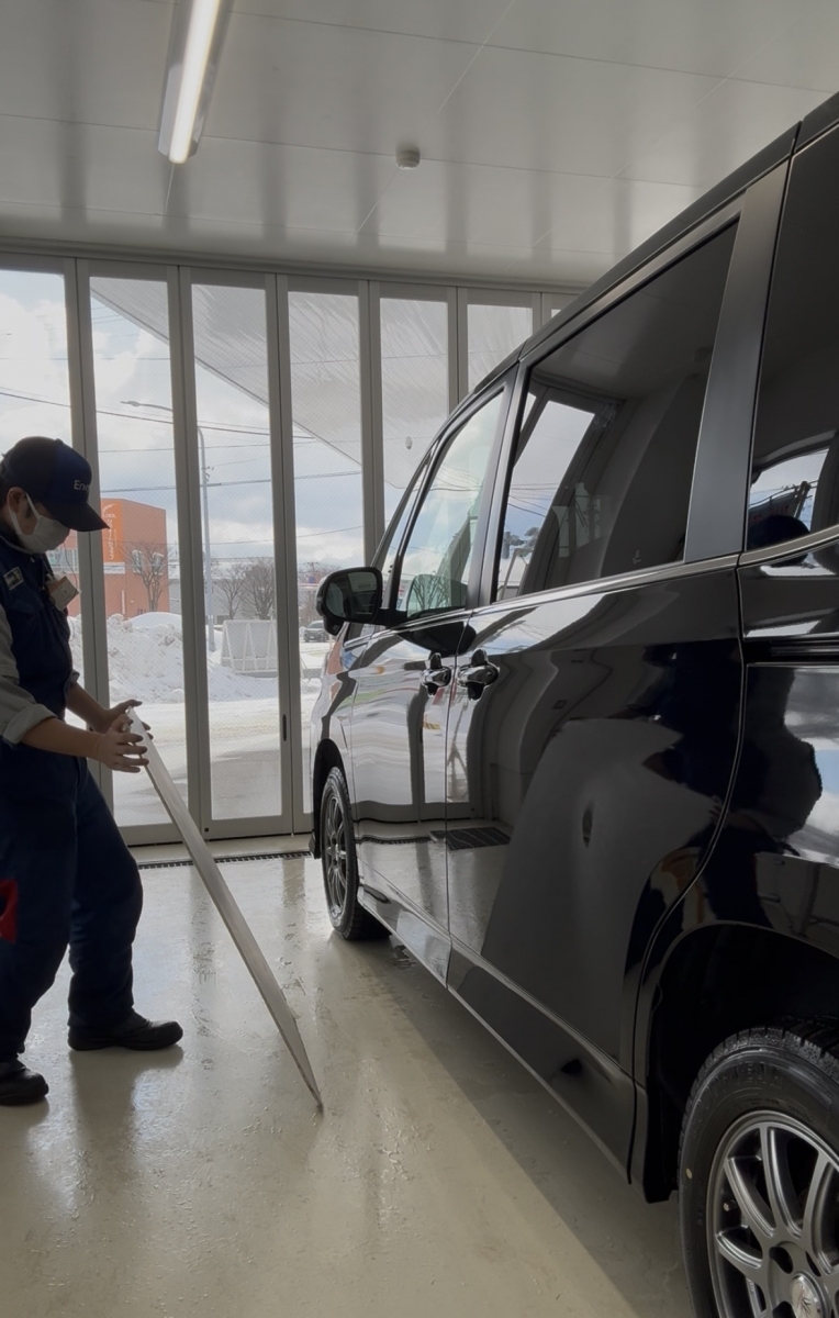 濃い色(黒色系)のお車は ボードを使用して影をつくり 拭き残しが無いかを確認します