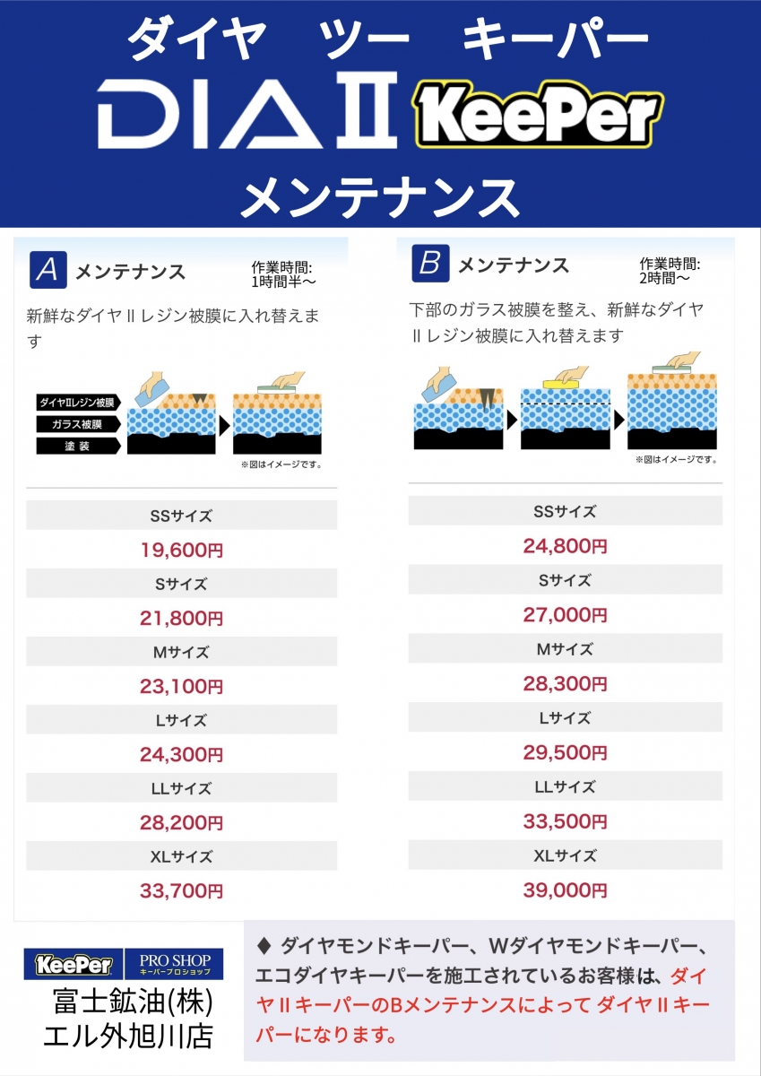 メンテナンス時に 『ダイヤⅡキーパーのメンテナンスBの施工を行う事で ダイヤⅡキーパーの仕上がり』になり ダイヤⅡキーパーを体感する事ができます!!