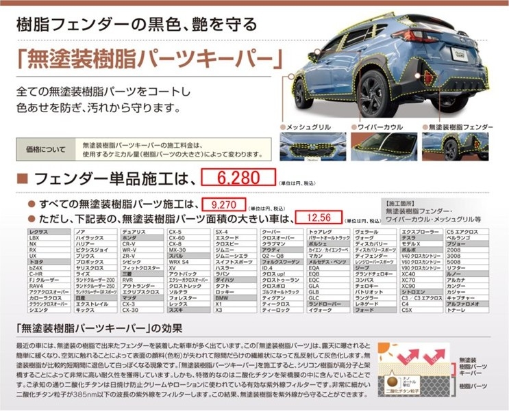 キレイ"と"楽する"は両立できる、新コーティング その名も「フレッシュキーパー」 特殊な防汚能力、雨が降れば、まるで洗車をしたようにキレイになります。 屋外駐車でも安心です。