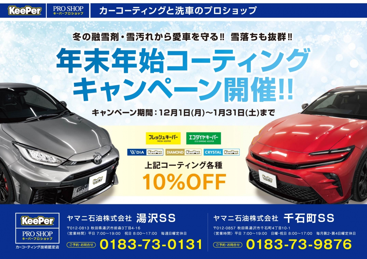 2025年12月1日〜2026年1月31日まで、今年はヤマニ石油株式会社 湯沢給油所・千石町給油所両店舗合同で、年末年始KeePerコーティングキャンペーンを開催いたします!