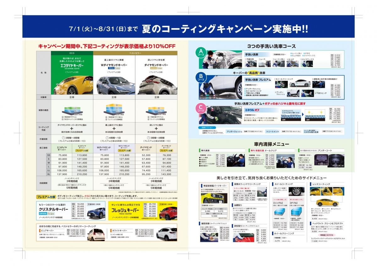 ●WEB割・・・Webからご予約いただくか、当店WEB画面提示で店頭価格よりコーティング5%OFF