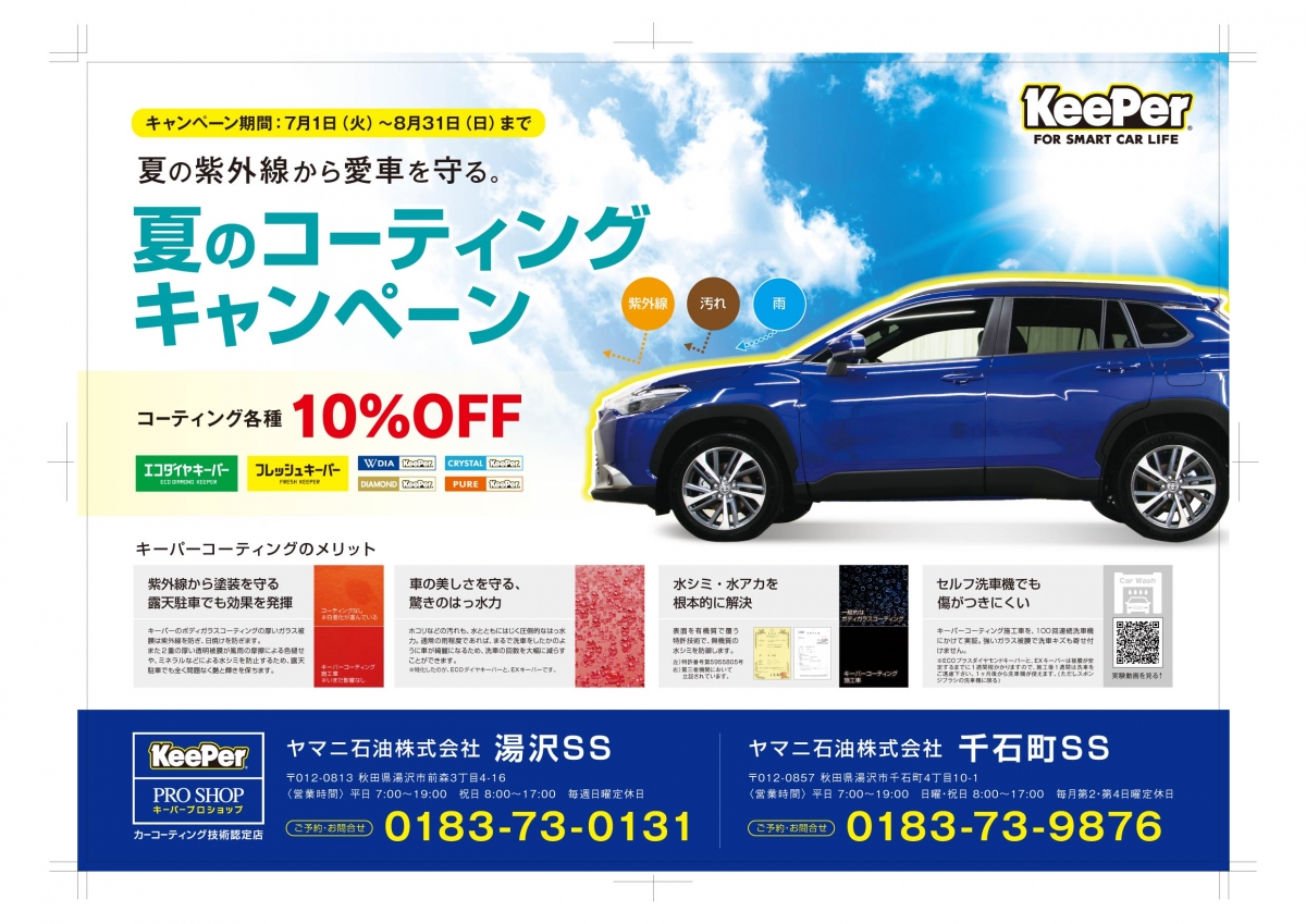 2025年7月1日〜8月31日まで、今年はヤマニ石油株式会社 湯沢給油所・千石町給油所両店舗合同で、夏のKeePerコーティングキャンペーンを開催いたします! (ご予約は6月中から受付開始しておりま...