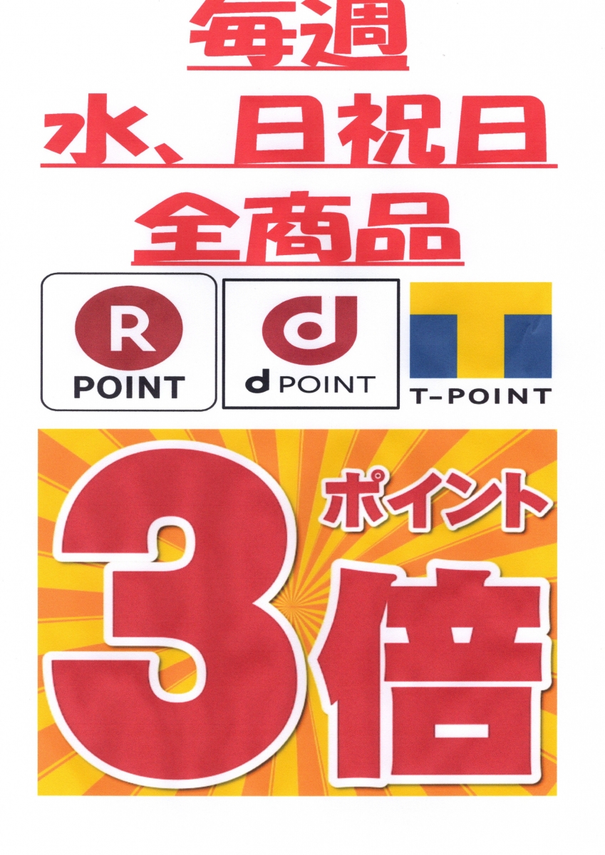 更に!水、日祝祭日は楽天、ドコモ、Tポイントが全(∩´∀`)∩商品対象で3倍に!(∩´∀`)∩