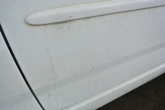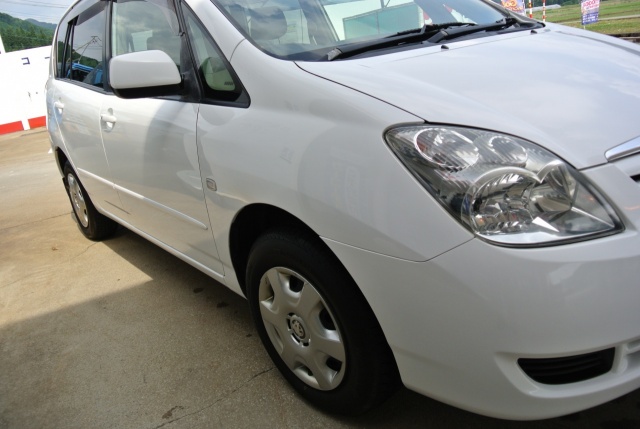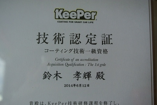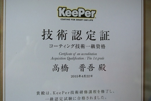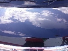 クリスタルキーパー施工車です。水をかけた直後ですが水滴がわずかしかのこりません。雲がくっきり写るほどの光沢も出ました。