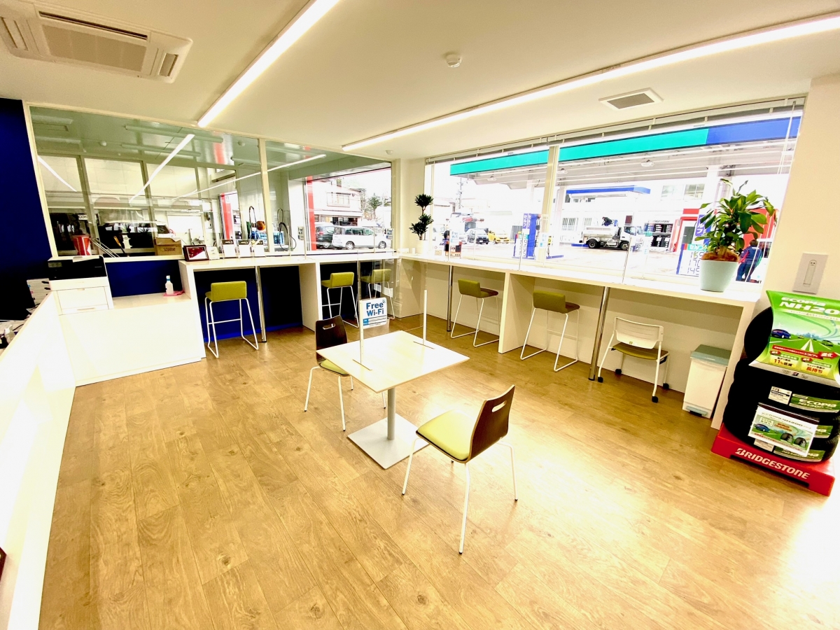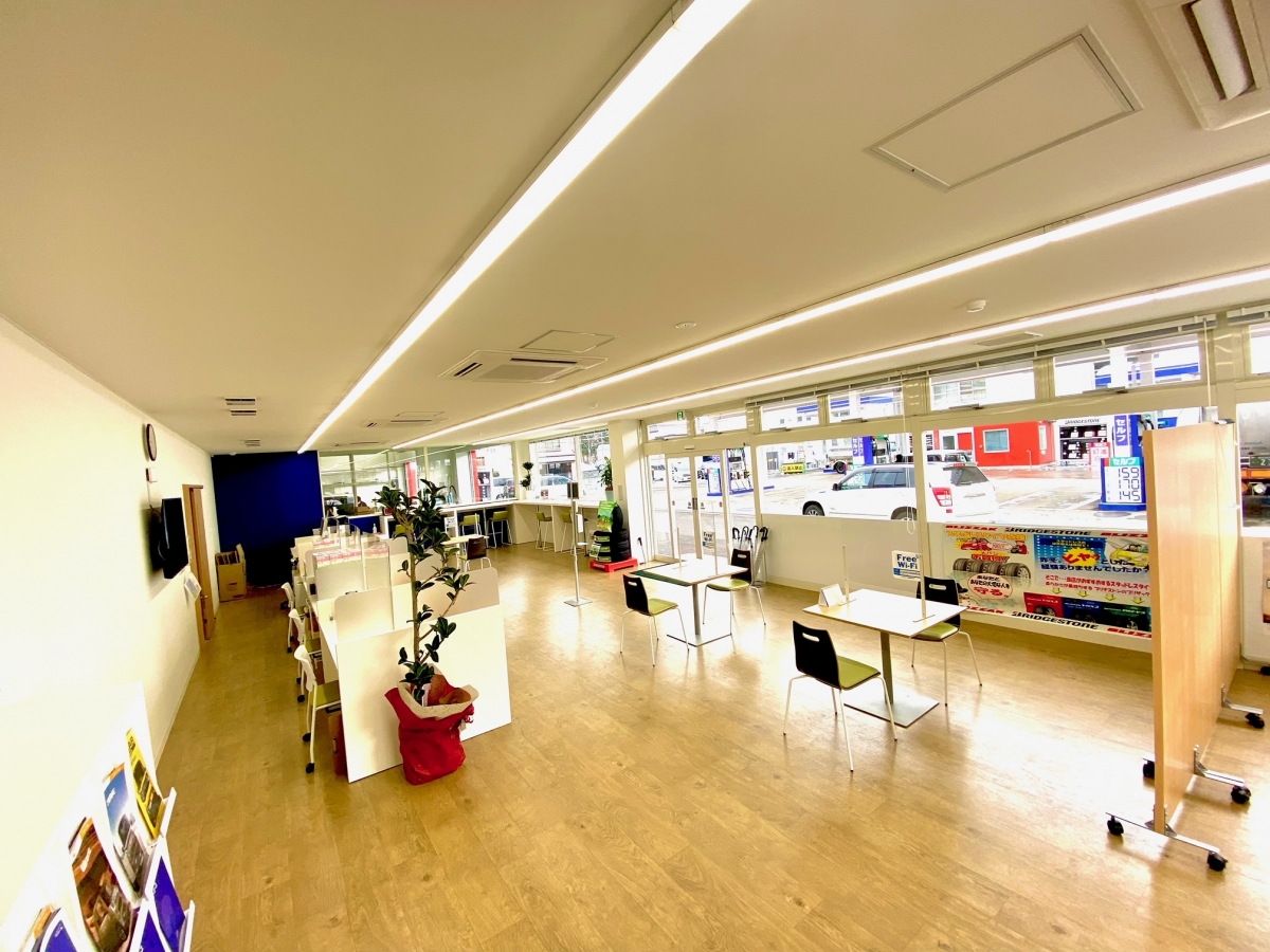 落ち着ける室内空間をご用意しております。 愛車がきれいになるまで、ごゆっくりおくつろぎ下さい。