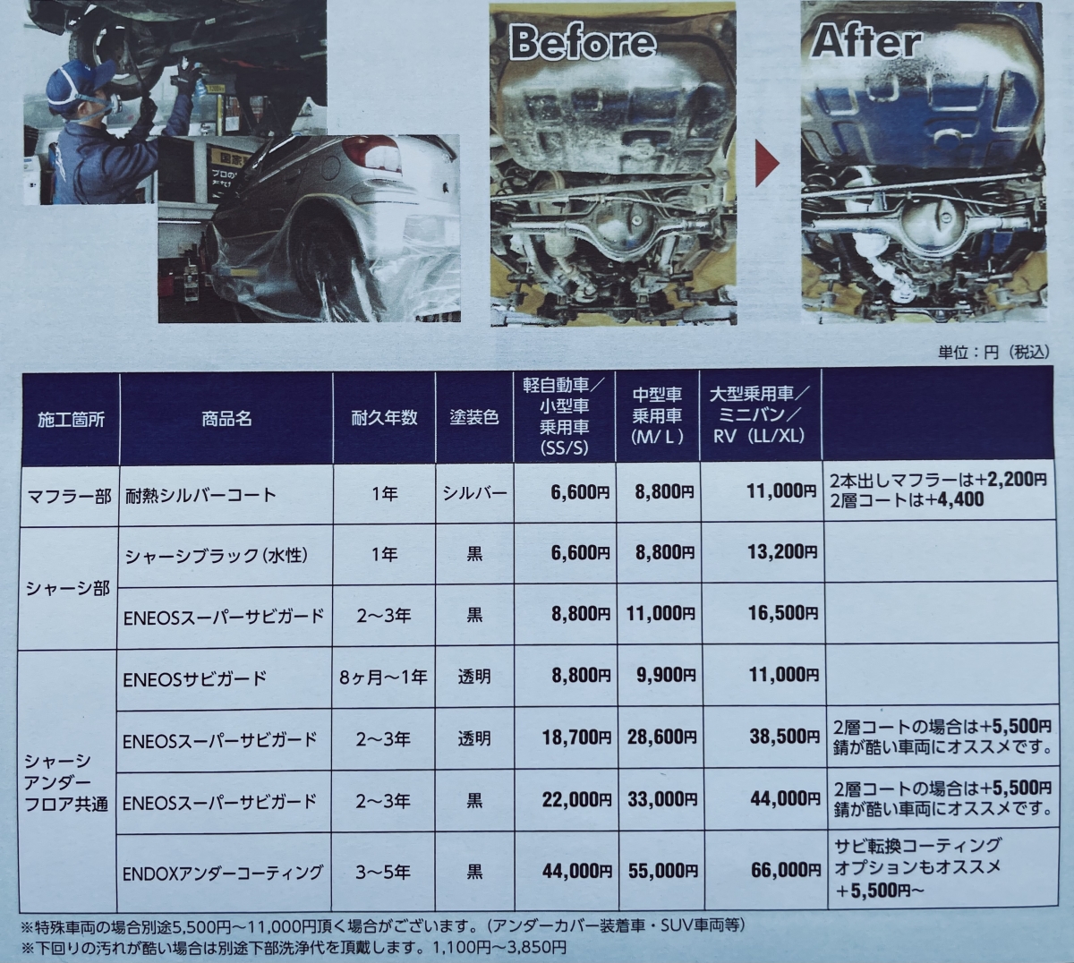 下廻り塗装で北国の冬の塩害からお車を守りましょう!!