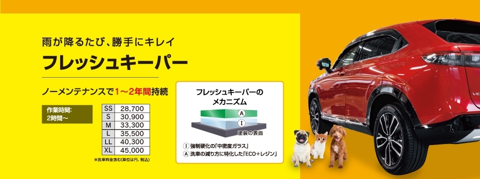 A.コーティングは、納車後すぐのタイミングがお勧めです。 キーパーコーティングは、非常に細かい分子でコーティングを定着させていきます。例えば、塗りたての塗装でも、通気性に優れておりますので塗装の乾燥過程に出てくる ガスも、コーティングした後でもキレイに抜けていきます。多くのガラスコーティングに 入っているキシレンなどの『有機溶剤』を使わないため塗装に優しく、侵食してしまうことはありませんのでご安心してお任せ下さい。
