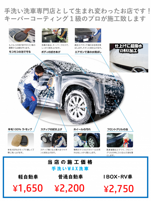 ●手洗い洗車・コーティング・車内清掃&除菌・シートクリーニング
