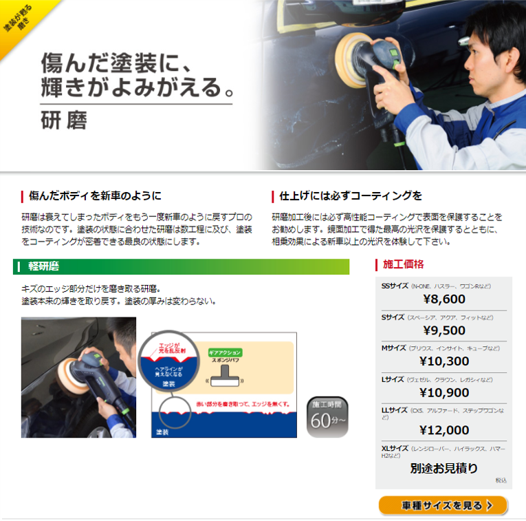 ご納得いただける仕上がりはもちろんのこと、コーティング後のメンテナンス、洗車などもお任せ頂けるようスタッフ一同心を込めたサービスの提供に心がけています。