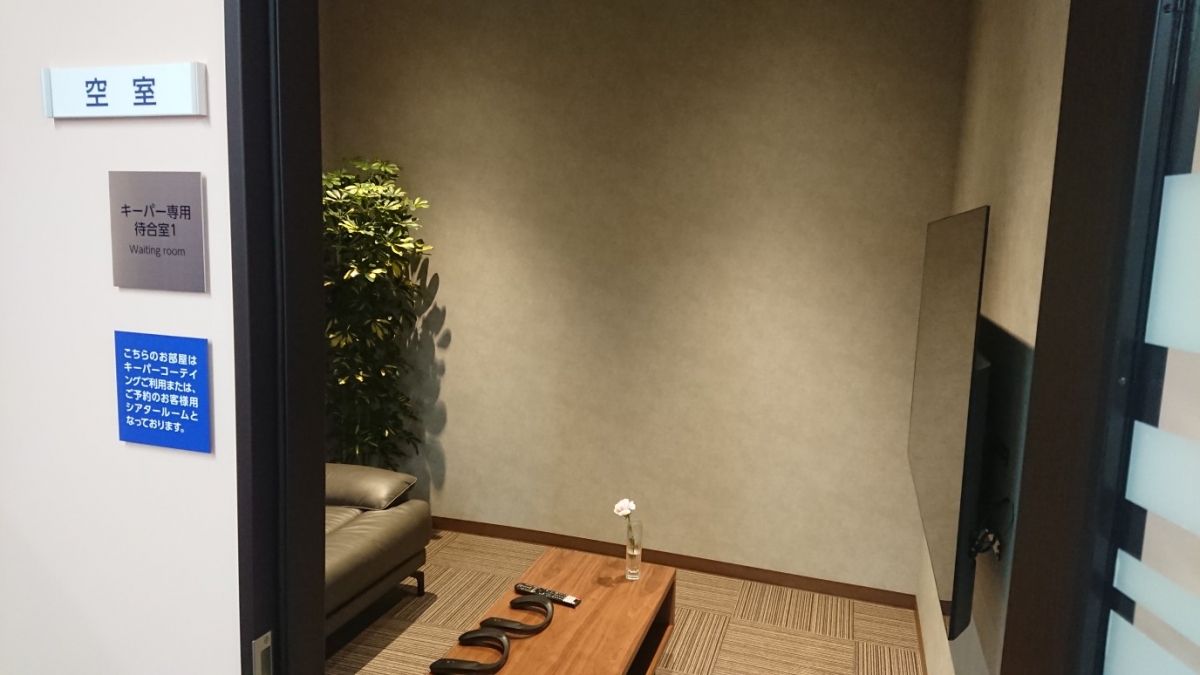サービスルームの奥に見えるのは、な、な、なんとキーパー専用待合室です。しかも、2部屋。中はシアタールームになっており、コーティングを予約して待ってる間ゆったりくつろげるスペースとなっております!