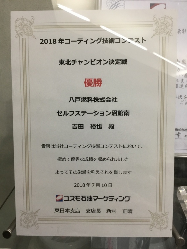 2018年コスモ石油コーティング技術コンテスト東北大会優勝しました?