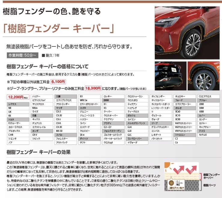 お車の種類によっては施工不可の箇所もある場合もございますので