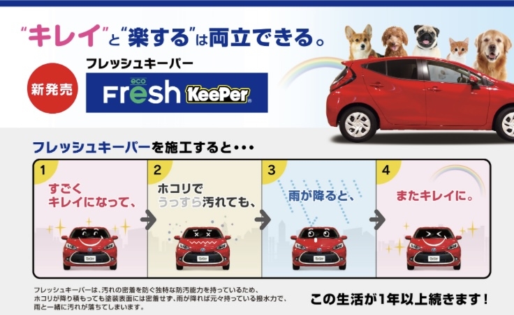 今一番人気の1年間ノーメンテナンス・ノーワックスのボディガラスコーティング、クリスタルキーパー! ガラス特有の深いツヤと輝きがあり、汚れにくくお手入れが非常にラクになります!