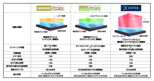 私たちが自信を持ってオススメするコーティングの特徴が下記に記載されておりますのでご覧下さい。
