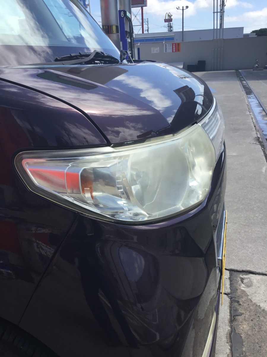 紫外線、酸性雨で劣化して黄ばんでしまったヘッドライト、レンズを