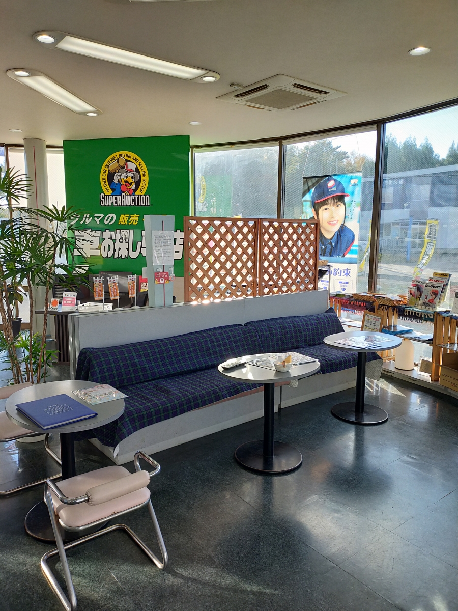 ゲストルームです。作業や洗車などでお待ちの間ゆっくりくつろげるスペースになっております。毎日、清掃、除菌、消臭を徹底しています。