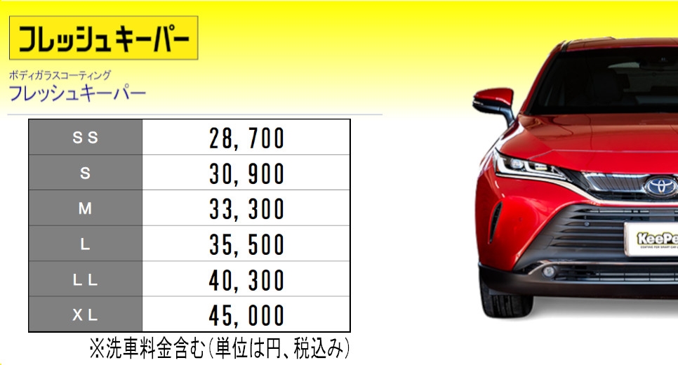 フレッシュキーパーは、汚れの密着を防ぐ独特な防汚能力を持ち、ホコリが降り積もっても塗装表面には密着せず、自然の雨が降れば元々持っている撥水力で、雨と一緒に汚れが流れ落ち、まるで洗車をしたようにキレイになります。