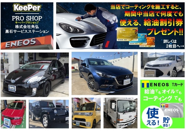 プロショップ角弘黒石SSへようこそ。満足と感動をあなたへ・・・。愛車を綺麗に保ちます。