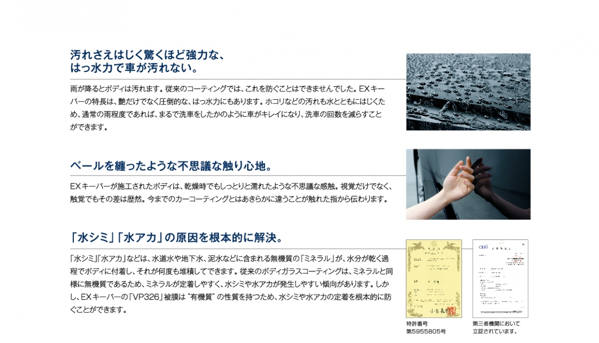 ガラス被膜による特有のツヤに水はじきはダイヤモンド譲り!