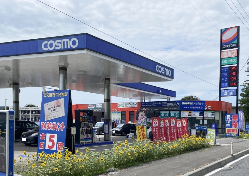 - ◆国道104号線沿いに位置した、大型のセルフスタンドでコスモ石油の看板が目印です!(青い森鉄道 北高岩駅近く)