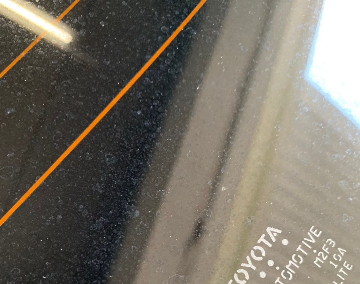 経年車ですと窓に魚のウロコのように見える水シミができる事があります。