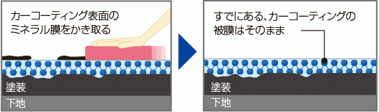 コーティングの被膜を一切削らず、ミネラル膜だけをそっとキレイに取る技術をKeePerが発明しました。