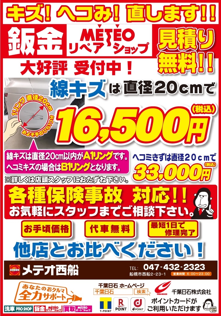 中山競馬場から行田方面に5分ほど走ると【ホリデー車検】の看板が目印のENEOSです。