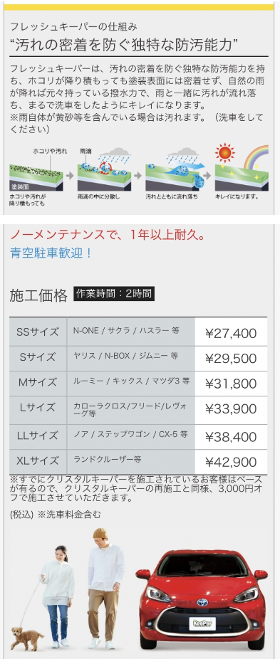 今までのクリスタルキーパーや、ダイヤモンドキーパーの水弾きを超える水弾きをぜひご体感ください!!